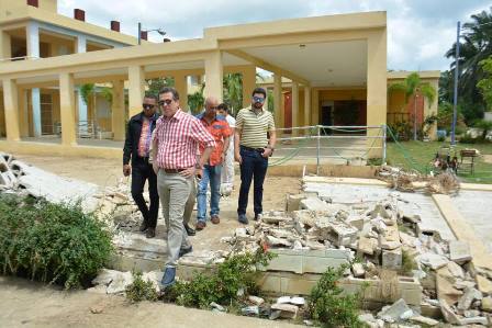 Durante su recorrido por los sectores Gina Andiana y Capotillo constató como fueron afectadas mas 400 de familias con la crecida del río Seibo, causando estragos en viviendas y la escuela básica Severina Cervan Mota.