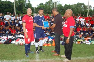Tras el partido, los visitantes hicieron entrega de camisetas a una gran cantidad de niños presentes. También hicieron de utilerías para el fomento del fútbol.