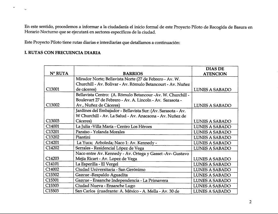 SANTO DOMINGO, República Dominicana.- La Alcaldía del Distrito Nacional anunció el inicio del plan piloto de recogida de basura en horario nocturno en 30 sectores de esta jurisdicción.