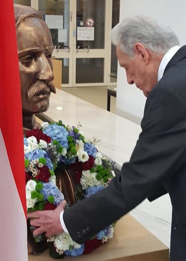 En el marco de la celebración, el embajador Rafael Calventi realizó una ofrenda floral ante el busto del patricio Juan Pablo Duarte, en el Instituto Iberoamericano de Berlín.