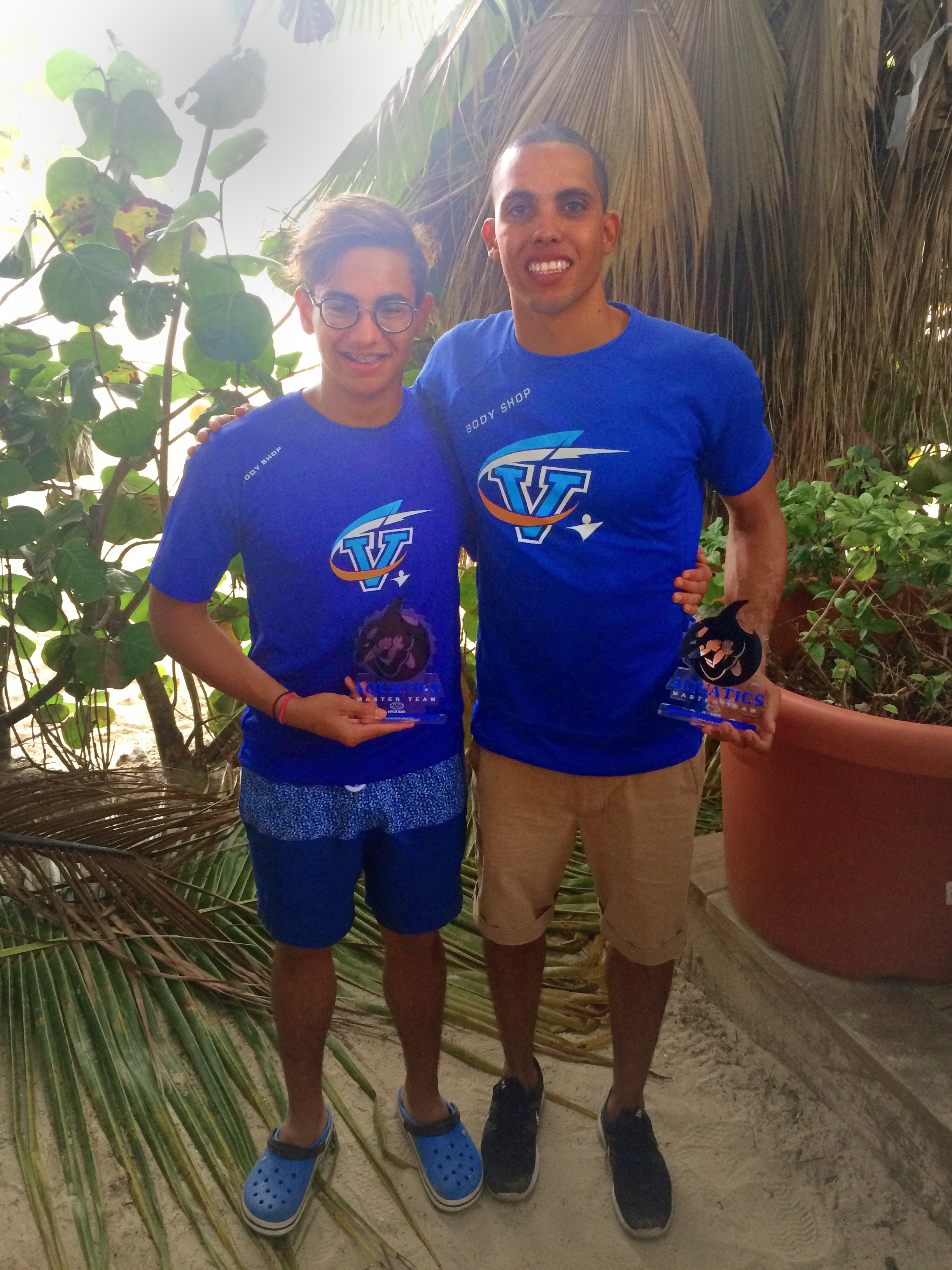 BOCA CHICA.- Miguel Arzeno y Miguel Portes del equipo Body Velas del Club Atlético Body Shop, obtuvieron la primera posición, en sus respectivas categorías, del Sexto Circuito de Aguas Abiertas Aquatics Master celebrado en Bocana.
