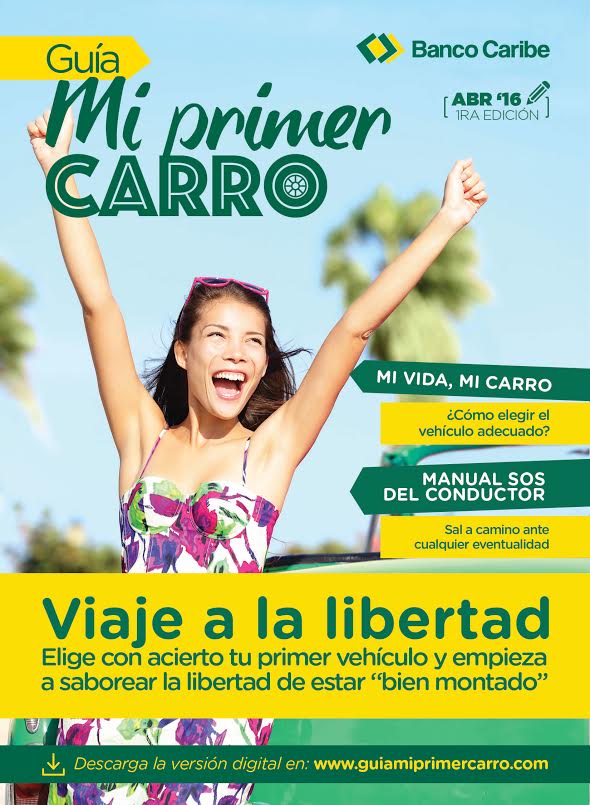 SANTO DOMINGO, República Dominicana.- El Banco Caribe presentó “Mi Primer Carro”, primera guía completa para la compra del primer vehículo, definida como un producto editorial de descarga online con una edición impresa, que contiene todas las informaciones básicas que se deben conocer antes, durante y después de la adquisición de un automóvil.