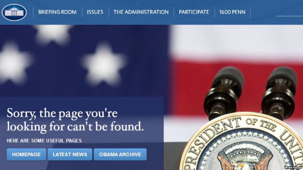 «Sorry, the page you’re looking for can’t be found (Disculpa, la página que estás buscando no puede encontrarse)», es el mensaje que se encuentran ahora los internautas que intentan acceder a la página www.whitehouse.gov/espanol.