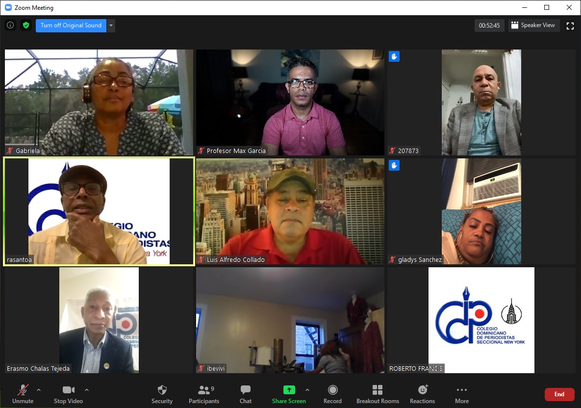 NUEVA YORK.-El Colegio Dominicano de Periodistas (CDP) dio apertura a su nuevo sistema operacional con la instalación de la plataforma “Zoom”, mediante la cual realizará las reuniones de su directiva, su membresía y grupos sociales.