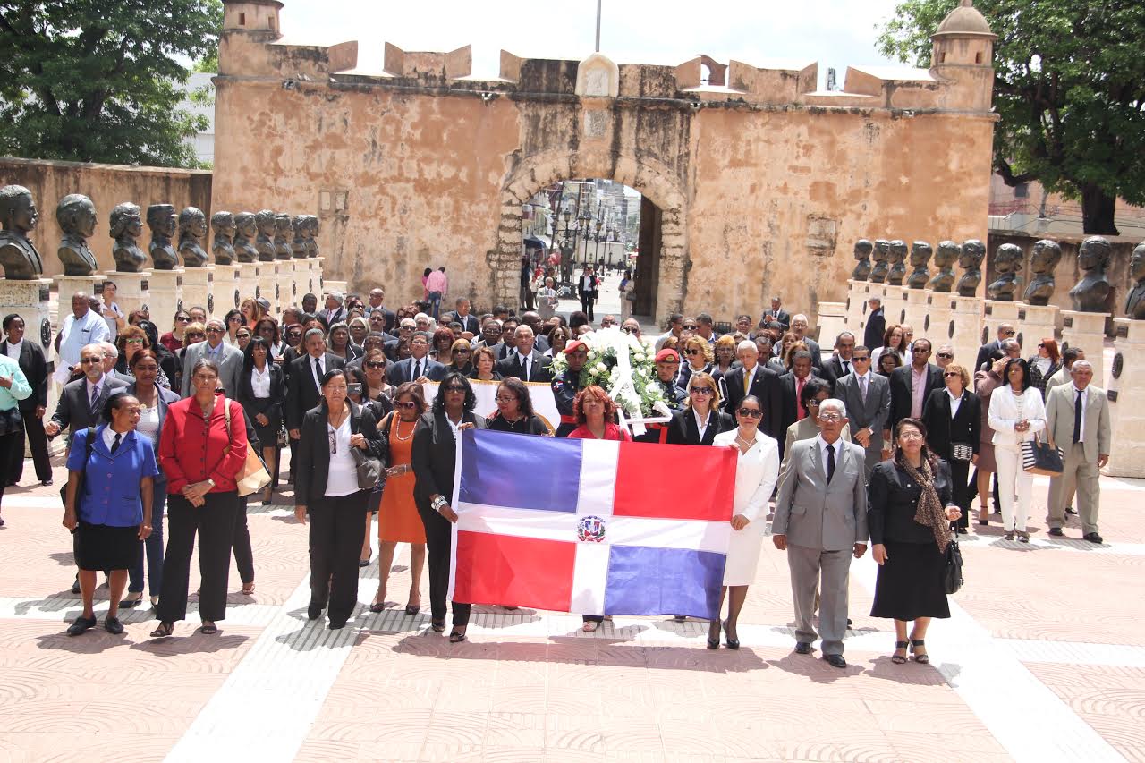 Posteriormente, una comitiva del Colegio Dominicano de Notarios y autoridades judiciales depositó una ofrenda floral en el Alta de la Patria, para exaltar a los patricios Patria Duarte, Sánchez y Mella.