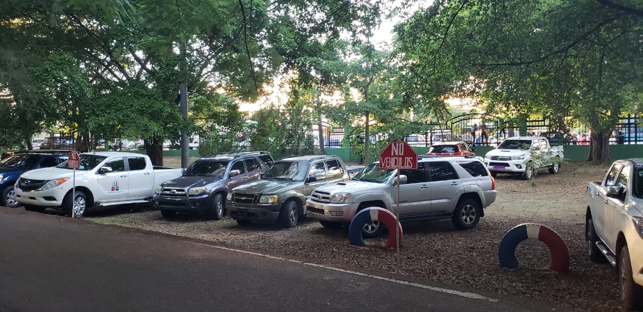 Sobre las gramas, además de miles de carros, yipetas y guaguas de los ciudadanos que visitaron el evento, el Comité captó en videos vehículos oficiales con placa la placa asignada 010, guaguas rotuladas como la Armada Dominicana, Ministerio de Deportes, y del mismo Ayuntamiento SDE, que se estacionaban entre los letreros de “cuida tu parque”, “no parqueo”, “prohibido parquearse”.