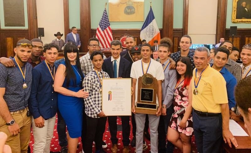 NUEVA YORK.- El concejal Ydanis Rodríguez entregó una proclama de reconocimiento al equipo de béisbol ‘The Generals’ de la escuela Gregorio Luperon, por haber ganado el campeonato de béisbol PSA AAA.