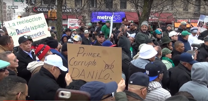 La demostración, organizada por entidades comunitarias y ciudadanos independientes, comenzó en la plaza Juan Pablo Duarte, del Alto Manhattan, donde eran exhibidas decenas de pancartas alusivas a la corrupción y pidiendo fin a la impunidad y la salida de la empresa Odebrecht, de territorio dominicano .