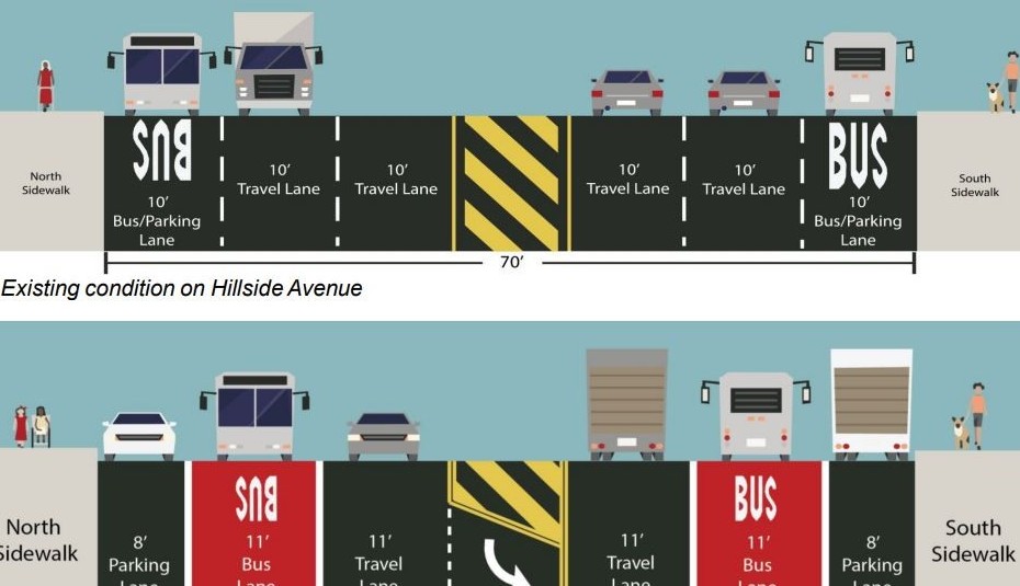 Agregó que “nuestro nuevo diseño incorporará carriles de autobús uniformes y vigilados por cámaras en todo el corredor, a la vez que liberará espacio en la acera para los comercios locales y sus entregas. Esperamos con interés la finalización de este proyecto y mejorar Hillside Avenue para todos”.