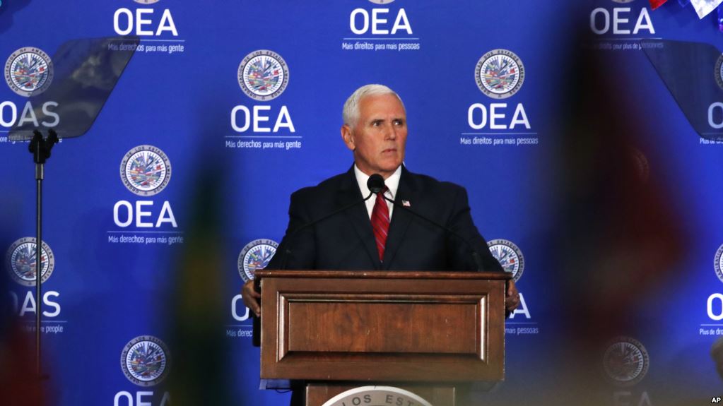 Pence hizo referencia a la misión de la OEA de preservar la democracia en la región y mencionó directamente a Cuba como el país que está detrás de la dictadura en Venezuela y en Nicaragua.