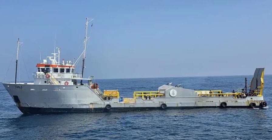 De acuerdo al mandatario, se trata del «Buque de Apoyo Multipropósito FMS EAGLE», de 54 metros de largo y bajo bandera de Tanzania, que fue interceptado a poco más de 700 kilómetros al suroeste de costas salvadoreñas, frente a la Bocana El Cordoncillo, en el departamento de La Paz.