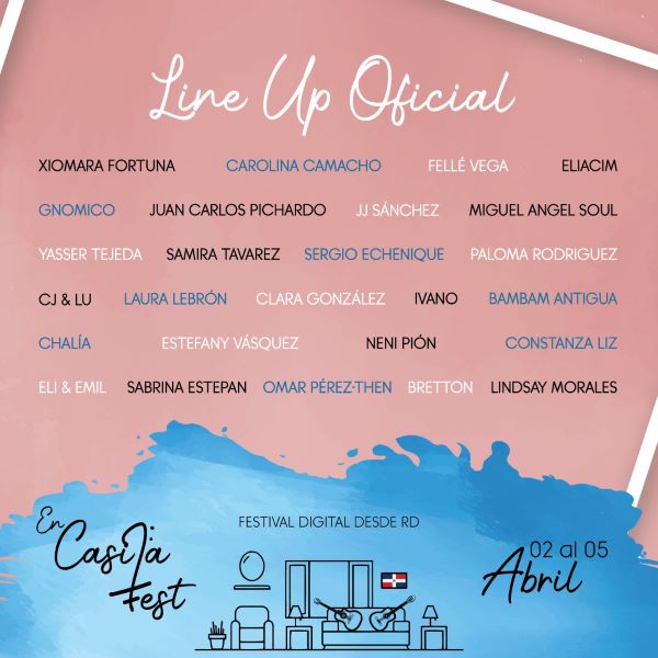 Cabe destacar que durante la semana pasada #EnCasitaFest contó con la participación de Diomary La Mala, Salime Caram y María del Mar, en una noche de boleros presentado el pasado viernes. Además con las intervenciones de Paula Disla, popularmente conocida como María Moñitos, Ania Colón, Alberto Cuentacuentos y Lulú, para llevar cuentos infantiles y entretenimiento para niños.