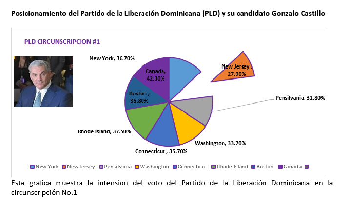 Teniendo en consideración que EE.UU. es el área geográfica con mayor cantidad de dominicanos en el exterior y la que mayores aportes económicos hace a la economía dominicana, hicimos muetreo de unas 1,574 personas con un margen de error de 0.55% en todos los Estados que conforman esta circunscripción y las preguntas fueron las siguientes: