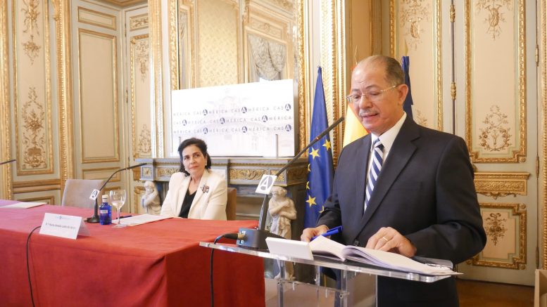 El especialista habló ante el embajador dominicano en España, Olivo Rodríguez Huertas, Antonio Pérez-Hernández y Torra, director del reputado centro cultural, intelectuales y escritores.
