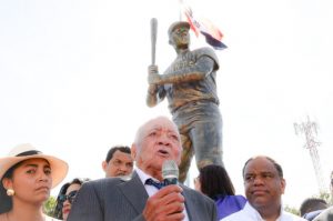 MONTECRISTI.- “Ay Dios mío”, exhaló con gran emoción, pero con voz firme y rostro sosegado, para luego dar gracias a Dios, “que me mantiene vivo en este día tan especial de mi vida”. Fue la primera reacción de don José Osvaldo Virgil Pichardo, al develarse el pasado sábado 16, una estatua en su amado pueblo natal, como gran homenaje del Gobierno y el país, por ser el primer beisbolista dominicano que jugó en las Grandes Ligas, hace 61 años y casi tres meses.