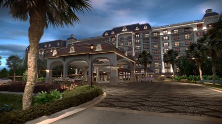 La elegancia de Europa y las costas del Mediterráneo se reflejan en el exterior del resort que cuenta con un bulevar adornado con palmeras y una elegante fachada adornada con arcos, pórticos, cascadas, torres y terrazas. Las piscinas del centro vacacional también están inspiradas en la región.