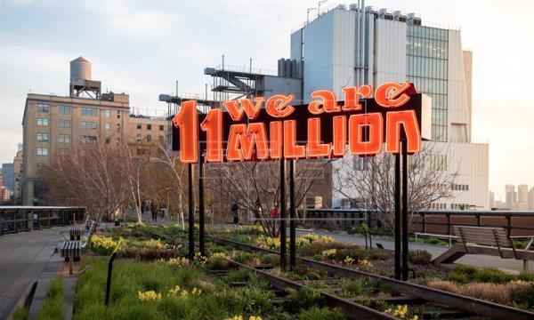 Los miles de visitantes del «High Line», creado sobre una abandonada vía del tren y con 2,4 kilómetros de longitud, podrán ver hasta marzo del 2019 la pieza «Somos 11 Millones», que también despliega el mismo mensaje en inglés, un letrero con luces de neón colocado en el parque y creado por la artista y activista Andrea Bowers, radicada en Los Ángeles.