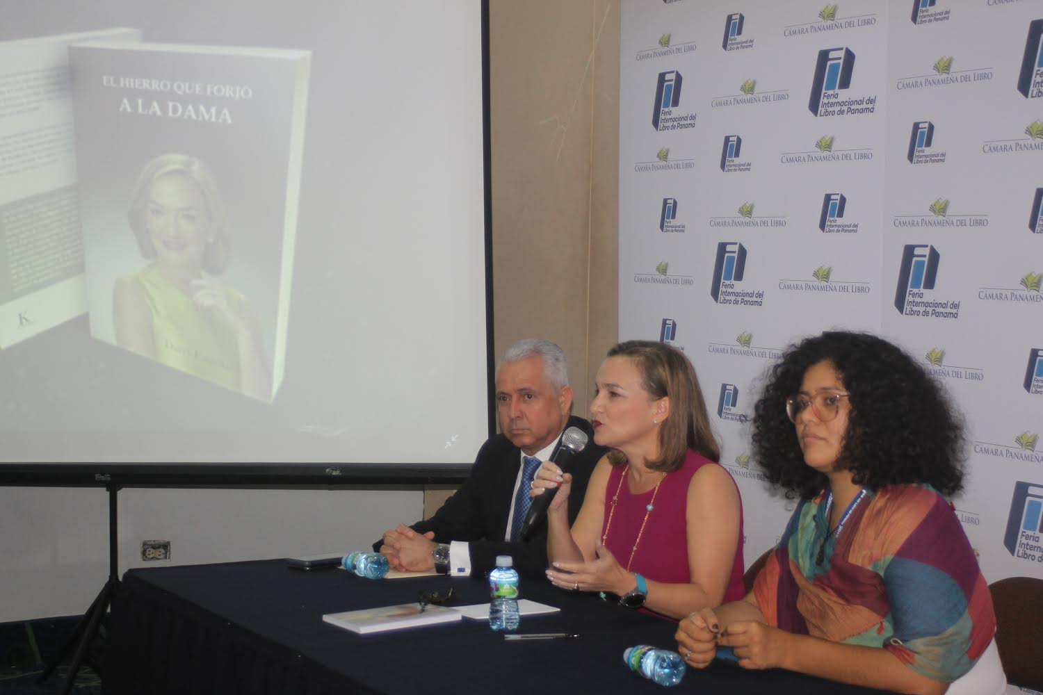 Igualmente hizo uso de la palabra la escritora panameña Corina Rueda, representante de la Cámara Panameña del Libro, quien agradeció en nombre de la institución que cada año organiza la importante feria del libro, haber tomado esa entidad para hacer unos de los lanzamientos del libro El Hierro que Forjó la Dama.