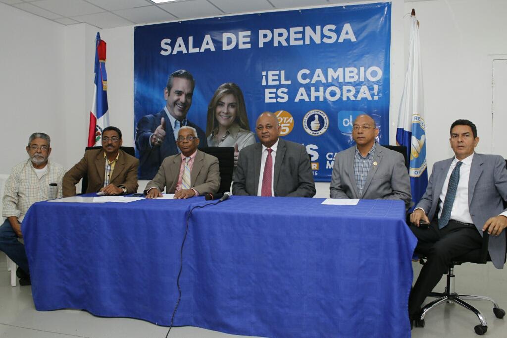 Fernando Campos, coordinador nacional, Radhamés Lora Salcedo, director ejecutivo, Osiris Duquela, director de políticas sociales, Cosme Bidó, director político, Alex Marchena, Director ingeniería, Hipólito Basilio, Agropecuario, y los dirigentes Alcibiades Almonte, Carlos Arias, Fernando Martínez y otros dirigentes hablaron en rueda de prensa en el Comando Nacional de Campaña, en la que estuvieron acompañados por Roberto Fulcar, director nacional.