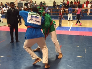SAN CRISTOBAL, República Dominicana.- Un escenario abarrotado de publico de todas las edades fue testigo de los aguerridos combates de atletas de diferentes países en la disciplina de kurash la que incursiona decididamente como un deporte de relevancia en todo el territorio americano.