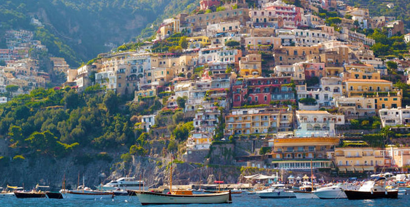 - El precioso pueblito de Positano con edificios y casas en tonos suaves en verdes colinas es divino y cuenta con bellas vistas de la costa. No conozco una mejor manera de pasar una mañana o tarde que paseándome por sus lindas calles bordeadas por edificios rosados, amarillos y blancos y disfrutando de su playa de piedrecitas grises y un mar azul añil. Un punto de interés es la Iglesia de Santa María Assunta con su linda cúpula adornada de azulejos que se puede ver desde casi cualquier punto del pueblo. Un ícono de una Madona negra que data del Siglo XVIII se puede ver en el interior de la iglesia. La mayoría de los viajeros hacen pausas aquí o allá en las tiendas y boutiques de Positano para comprar un souvenir –quizás unas lindas sandalias o algún objeto de cerámica local para recordarse de su viaje. Pero quizás no hay necesidad de comprar souvenirs, ya que como el novelista John Steinbeck señaló, “Positano deja huella profunda. Es un lugar de ensueño que no parece real cuando uno está allí y se convierte en realidad cuando nos vamos, y nos llama siempre.”