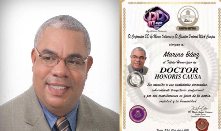 MIAMI, Florida.- La Universidad USA CAMPUS de Miami y el Corporativo DD by Marco Ontiveros entregaron el pasado sábado al escritor y periodista Marino Báez el Doctorado Honoris Causa en atención a sus cualidades personales, trayectoria profesional y contribuciones a favor de su patria, sociedad y la humanidad.